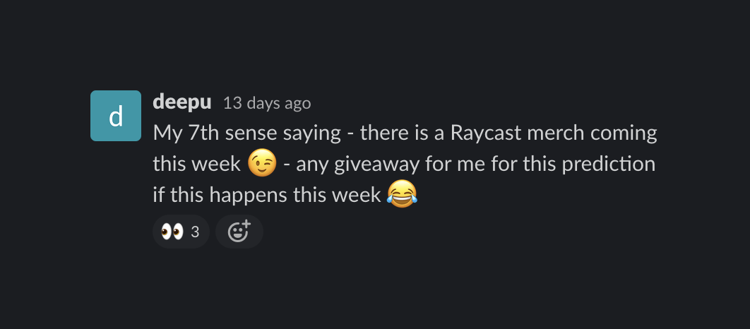 Except for Deepu, this may have come as a surprise to many (like a lot of Launch Week announcements), but we made sure to do it in total Raycast fashion – inside the app 😉
